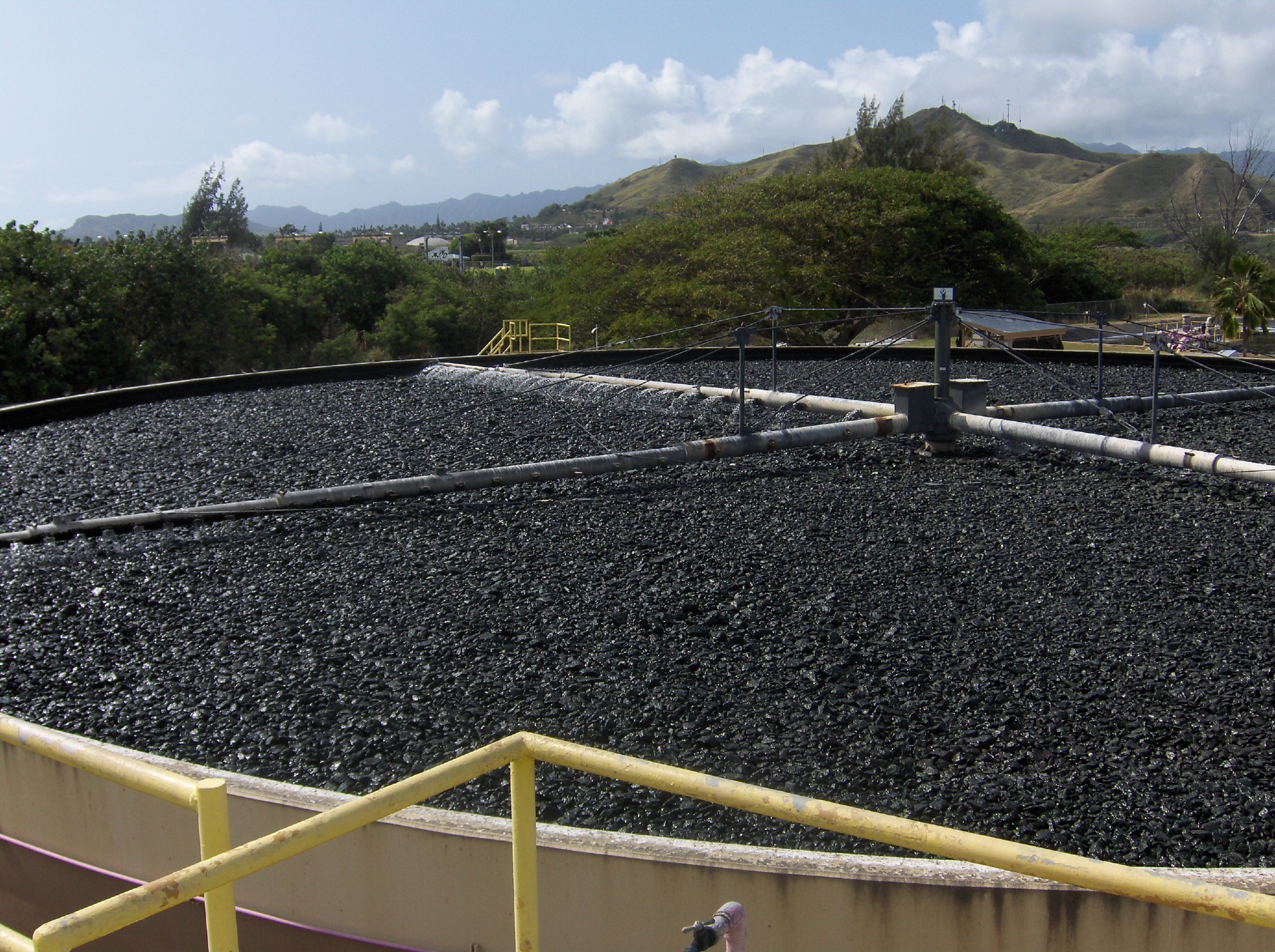 - Large tanks or concrete enclosures filled with plastic packing or other media.