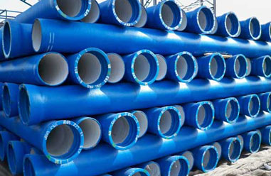 Ductile Iron Pipe: It is a pipe made of ductile cast iron commonly used for potable water transmission and distribution. This type of pipe is a direct development of earlier cast iron pipe, which it has superseded. The ductile iron used to manufacture the pipe is characterized by the spheroidal or nodular nature of the graphite within the iron, the pipe is manufactured using centrifugal casting in metal or resin lined moulds. Protective internal linings and external coatings are often applied to ductile iron pipes to inhibit corrosion: the standard internal lining is cement mortar and standard external coatings include bonded zinc, asphalt or water-based paint. In highly corrosive environments loose polyethylene sleeving (LPS) to encase the pipe may also be used. Life expectancy of unprotected ductile iron pipes depends on the corrosiveness of soil present and tends to be shorter where soil is highly corrosive. However, a lifespan in excess of 100 years has been estimated for ductile iron pipelines installed using “evolved laying practices”, including use of properly installed LPS (polyethylene encasement).Ductile iron pipe is sized according to a dimensionless term known as the Pipe Size or Nominal Diameter (known by its French abbreviation, DN. Nominal pipe sizes vary from 3 inches up to 64 inches. Pipe dimensions are standardized to the mutually incompatible with ISO 2531 / EN 545/598Water based pipe coatings, are an environmentally friendly coating that is applied to the inner & outer diameter of ductile iron pipe. They protect against corrosion from the outside and inside, and also protect the product from contamination. The coating is an emulsion manufactured using asphaltene and water primarily, with other raw materials according to the manufacturer’s specifications.