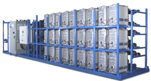 (Electro De-ionization)EDI: is a water treatment technology that utilizes an electricity, ion exchange membranes and resin to deionize water and separate dissolved ions (impurities) from water. It differs from other water purification technologies in that it is done without the use of chemical treatments and is usually a polishing treatment to reverse osmosis (RO). There are also EDI units that are often referred to as continuous electro deionization(CEDI) since the electric current regenerates the resin mass continuously. CEDI technique can achieve very high purity, with conductivity below 0.1 µS/cm.EDI products are used worldwide to produce ultrapure water systems in diverse applications, including power generation, pharmaceutical, semiconductor, petrochemical and laboratory pure water systems.