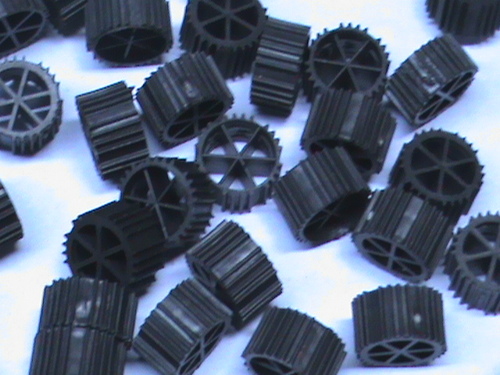 Moving Bed Biofilm Reactor: The MBBR system consists of an aeration tank (similar to a activated sludge tank) with special plastic carriers that provide a surface where a biofilm can grow. The carriers are made of a material with a density close to the density of water (1 g/cm3). An example is high-density polyethylene (HDPE) which has a density close to 0.95 g/cm3. The carriers will be mixed in the tank by the aeration system and thus will have good contact between the substrate in the influent wastewater and the biomass on the carriers.To prevent the plastic carriers from escaping the aeration it is necessary to have a sieve on the outlet of the tank.